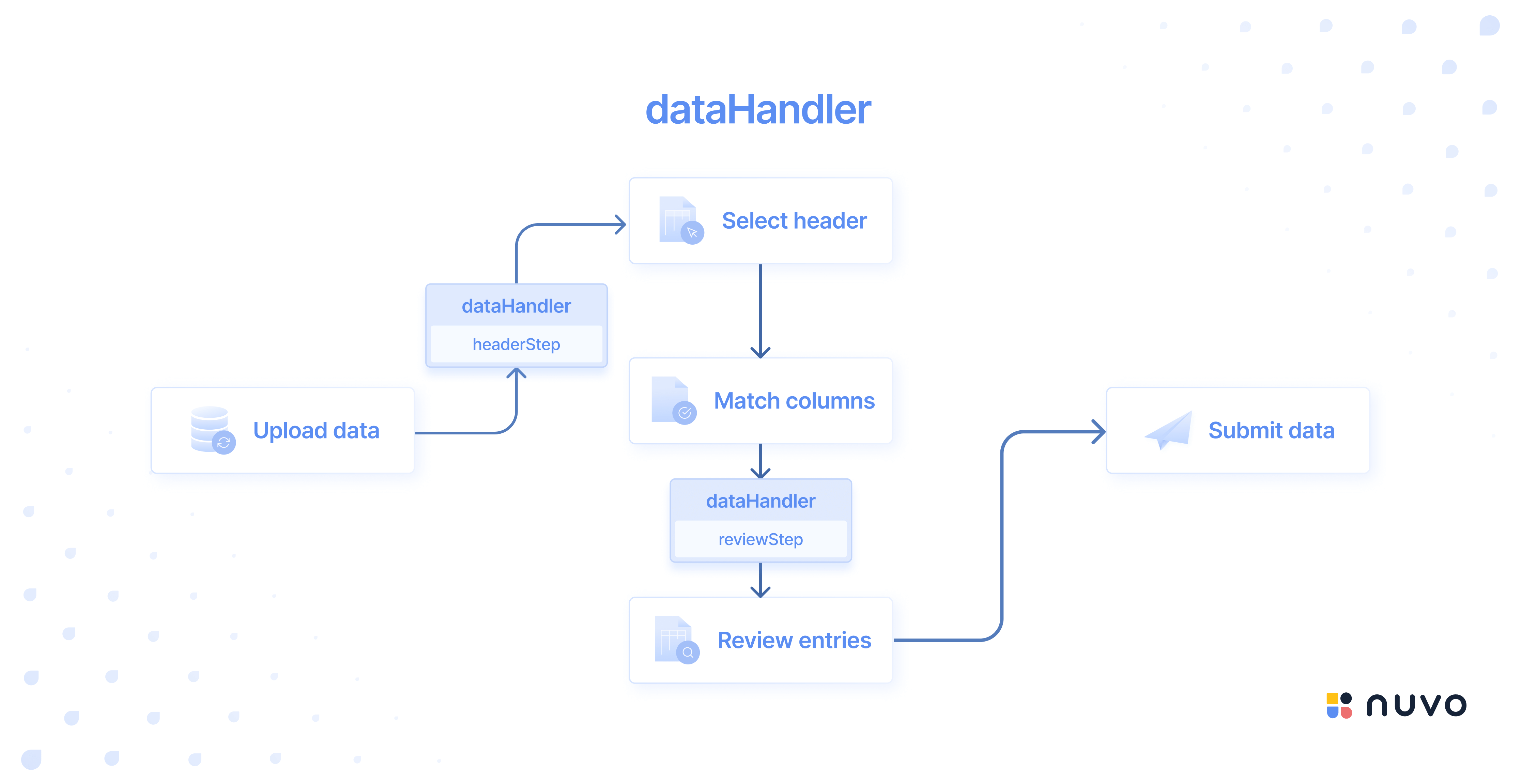 The Dynamic Import feature allows you to start the importer at any step, at any event, and with your preferred data format. This enables you to cover various use cases like allowing your users to import complex file structures such as .txt and zip files or to use nuvo not only as an importer but also as a data management UI, where users can edit their existing data.